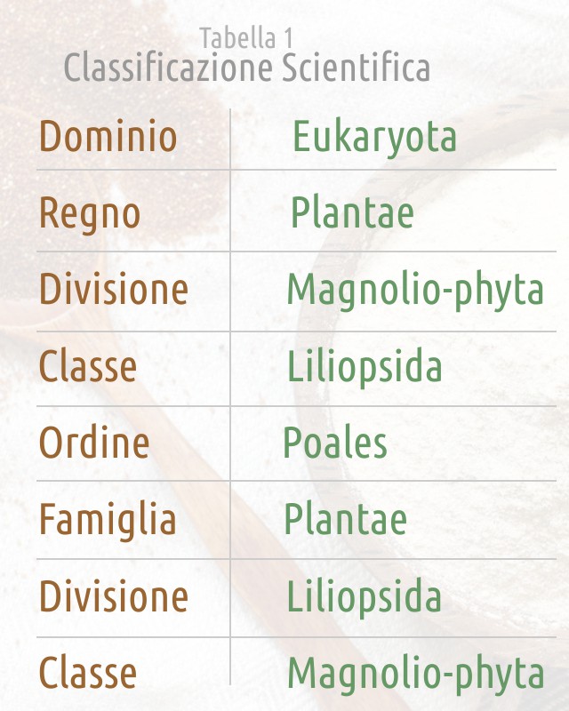 In Tabella 1 è riportata la classificazione scientifica della pianta.